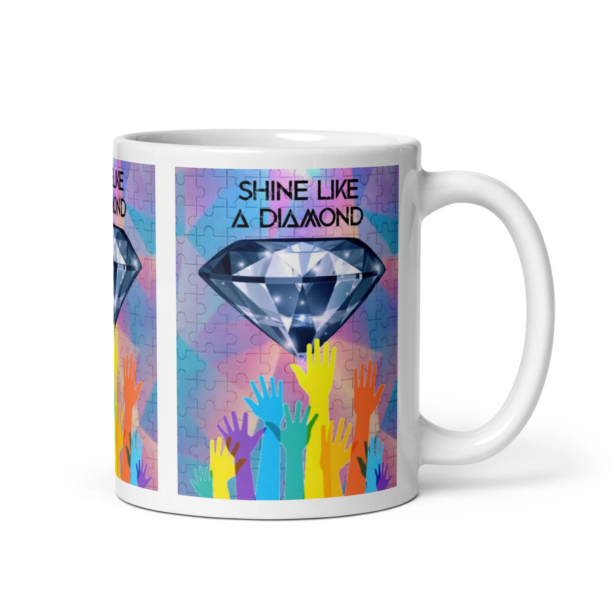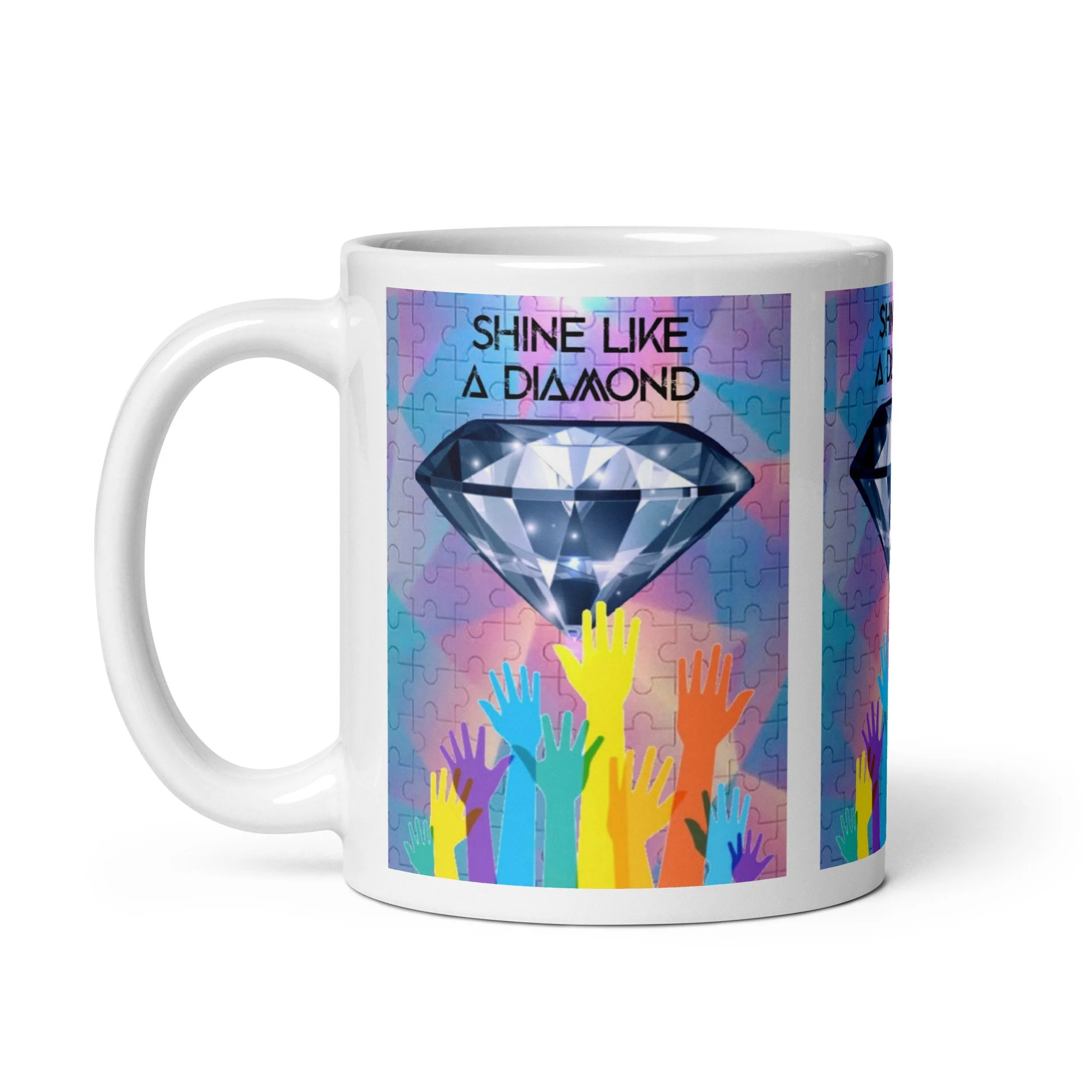 Our signature mug with the Shine Like a Diamond print.